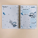 Si eres muy organizada pero nunca usas tus agendas completamente, lo mejor que puedes tener es este planner. Es una agenda pero sin fechas, tienes un organizador anual en la primera página, luego cuentas con la mitad del planner como organizador semanal, semana a la vista, y la otra mitad cuentas con un organizador diario por una cara y por la otra una hoja de apuntes.